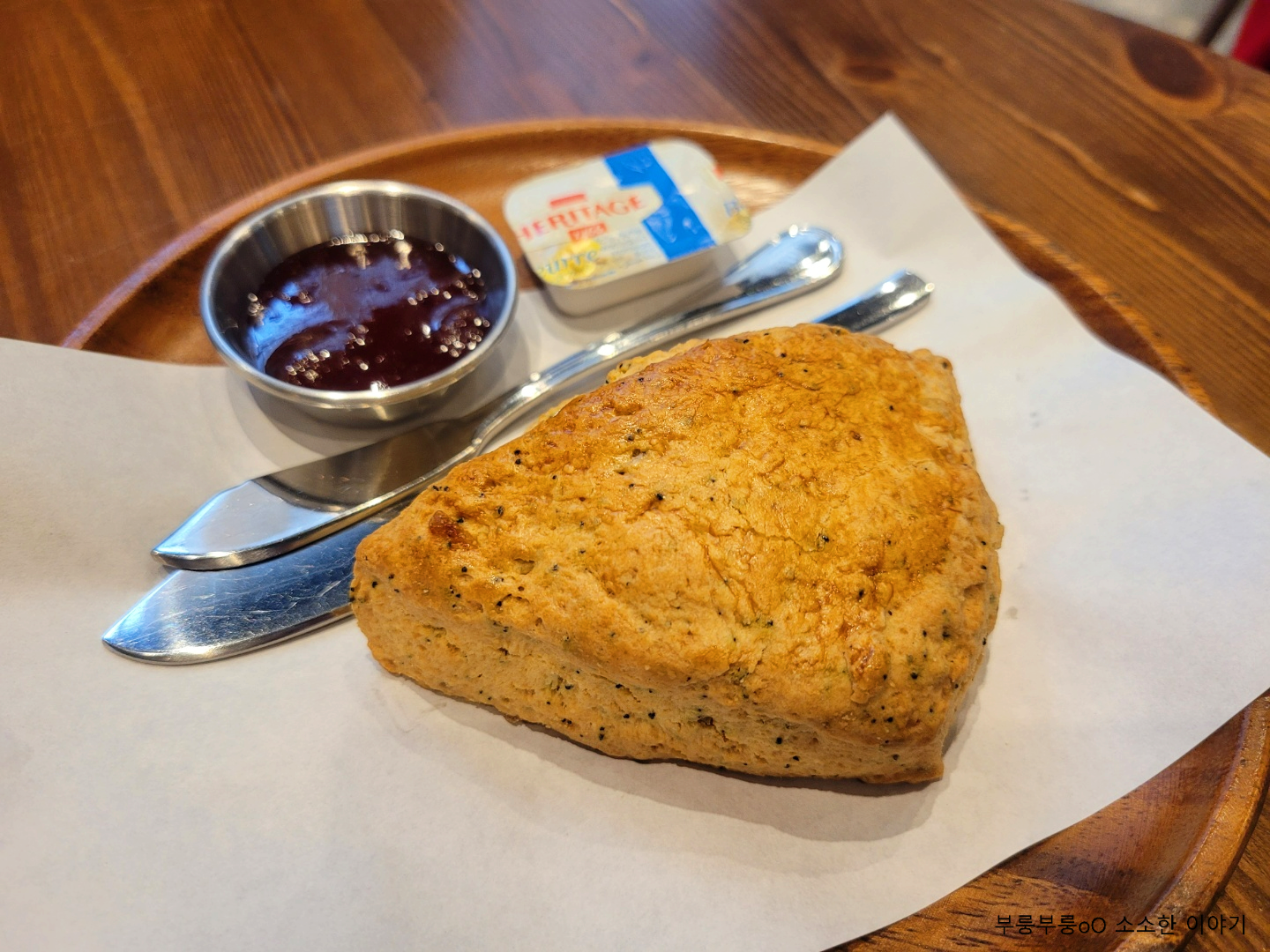 마지막으로 스콘은 겉바속촉의 정석이다. 스콘을 좋아하는 우리 부부는 카페에 스콘이 있으면 항상 주문하는데