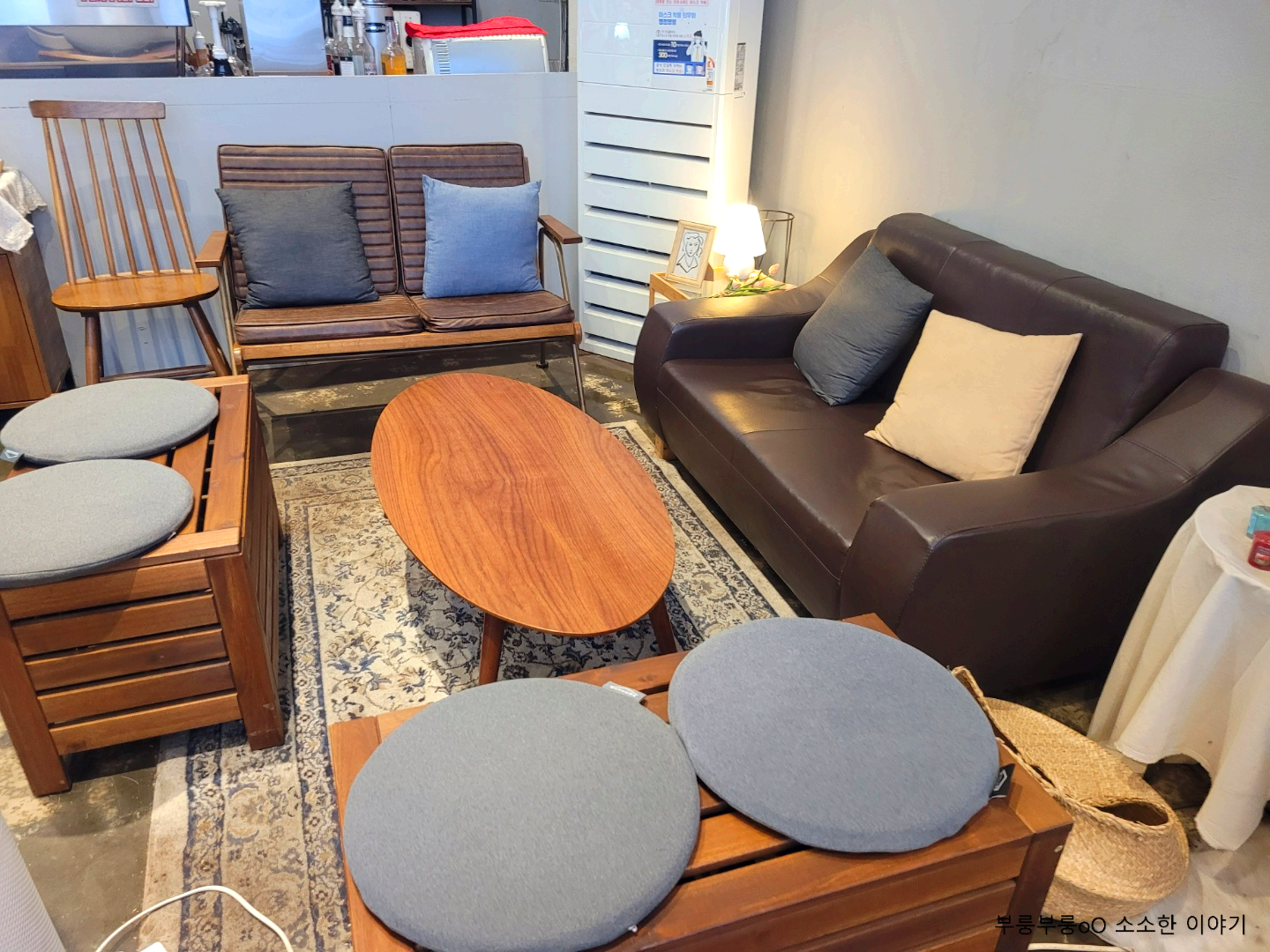 아래 깔려 있는 러그도 카페 분위기와 잘 어울리는 것 같다.
