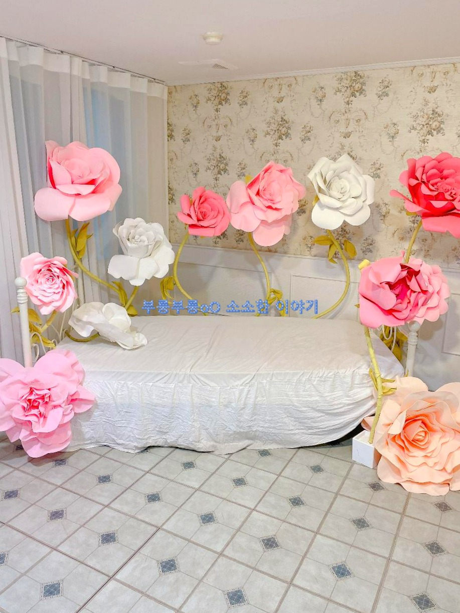원피스 입고 찍으면 찰떡일 것 같은 꽃 침대방. 꽃들이 키가 커서 침대 위 뿐만 아니라 꽃과 같이 찍어도 잘 나온다.