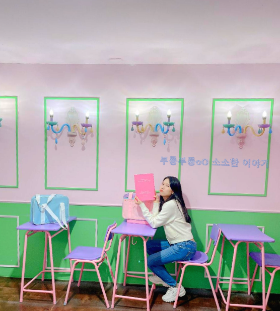 제주 "사진놀이터"는 전시공간마다 색감이 참 예쁘다. 애매모호한 색이 없고, 비비드 한 컬러감이 많다. 나는 이 날 흰색 가디건에 청바지를 입어서 조금은 단출하게 보이지만 좀 더 색감 있는 옷을 입고 갔다면 사진이 더 예쁘게 나왔을 것 같다.
